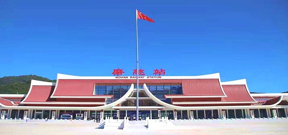 11.磨憨站位于云南省磨憨經(jīng)濟開(kāi)發(fā)區尚勇鎮東側,距鎮中心約1公里。車(chē)站為線(xiàn)側下式站房,總建筑面積為15768平方米,最高聚集人數為600人,站房主體一層,兩側二層,局部地下一層。旅客乘降站臺2座、到發(fā)線(xiàn)3條,目前進(jìn)站口分為國內出發(fā)、國際出發(fā),出站口分為國內到達、國際到達。采用驗檢分開(kāi)的進(jìn)站檢票模式。設國內候車(chē)區、國際候車(chē)區、商務(wù)候車(chē)室、行政貴賓室、母嬰候車(chē)室及重點(diǎn)旅客候車(chē)區。