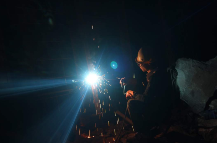 長(cháng)時(shí)間在隧道內工作,汗水在王田龍的額頭上滴答滴答地往下流,衣服也早被汗水打濕。