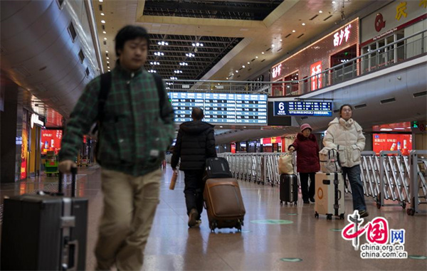 北京西站候車(chē)大廳內乘客人來(lái)人往。中國網(wǎng)記者 馬曠/攝
