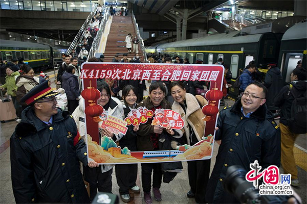 乘客與車(chē)站工作人員一同拍攝“臨別紀念照”。中國網(wǎng)記者 馬曠/攝