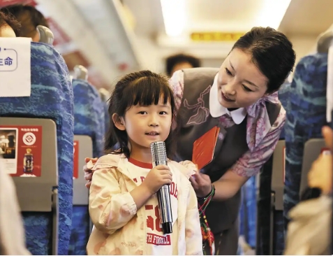 今年以來(lái),青藏集團公司依托鐵路沿線(xiàn)特色資源,開(kāi)行多趟主題旅游列車(chē)。其中,“大美青?!ば腋N鞑亍睂?zhuān)列已開(kāi)行8趟,服務(wù)游客2500余人次。此外,“六一”紅領(lǐng)巾專(zhuān)列、“研學(xué)專(zhuān)列”等特色列車(chē)也深受群眾歡迎,通過(guò)唱紅歌、非遺體驗等活動(dòng),讓旅客在旅途中接受文化熏陶。